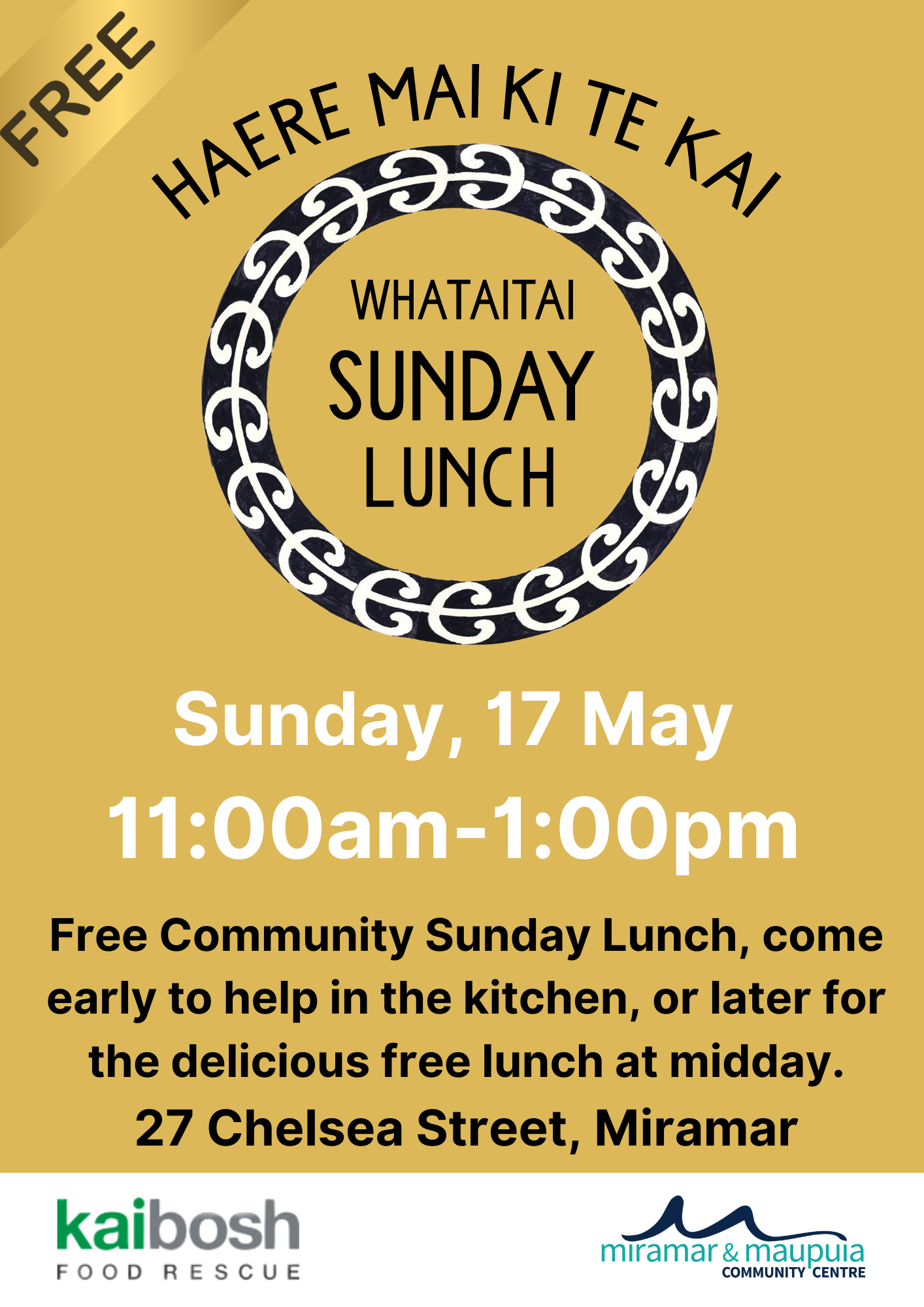 Free Community Sunday Lunch, come early to help in the kitchen,