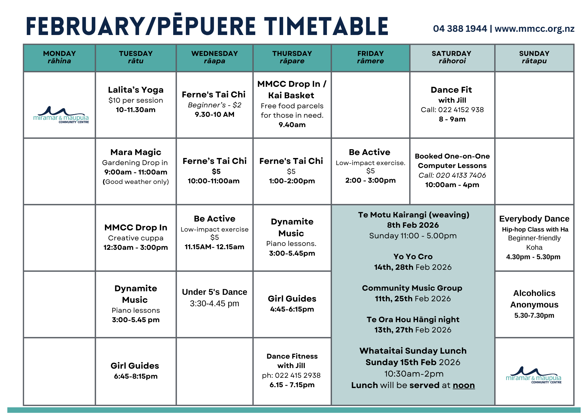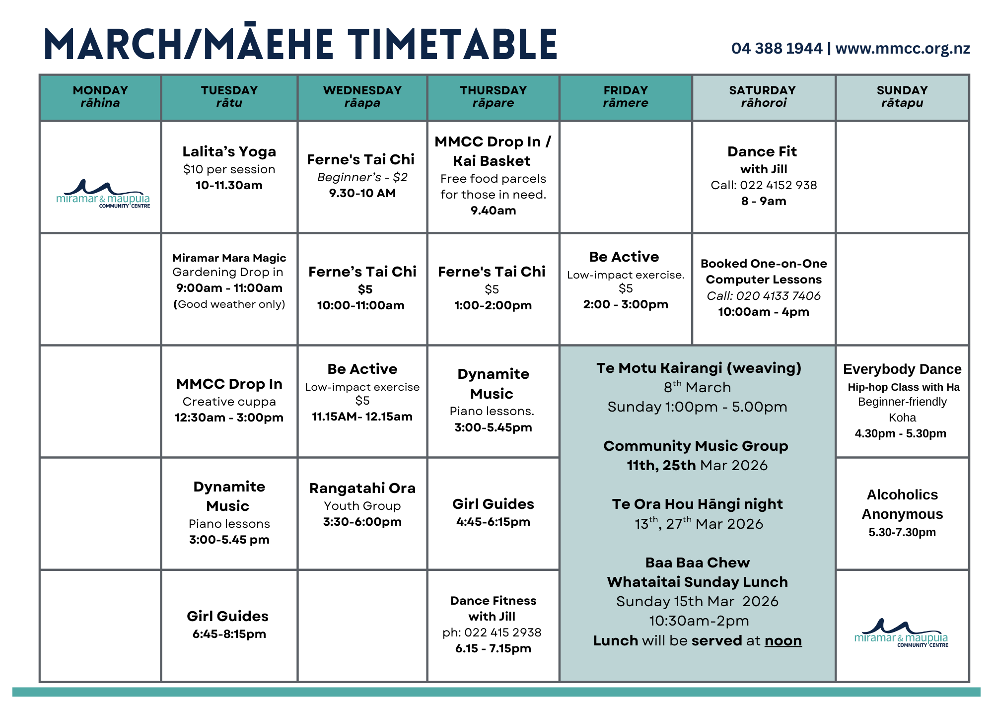 Join our mailing list [here] and we’ll send you the updated timetable each month.